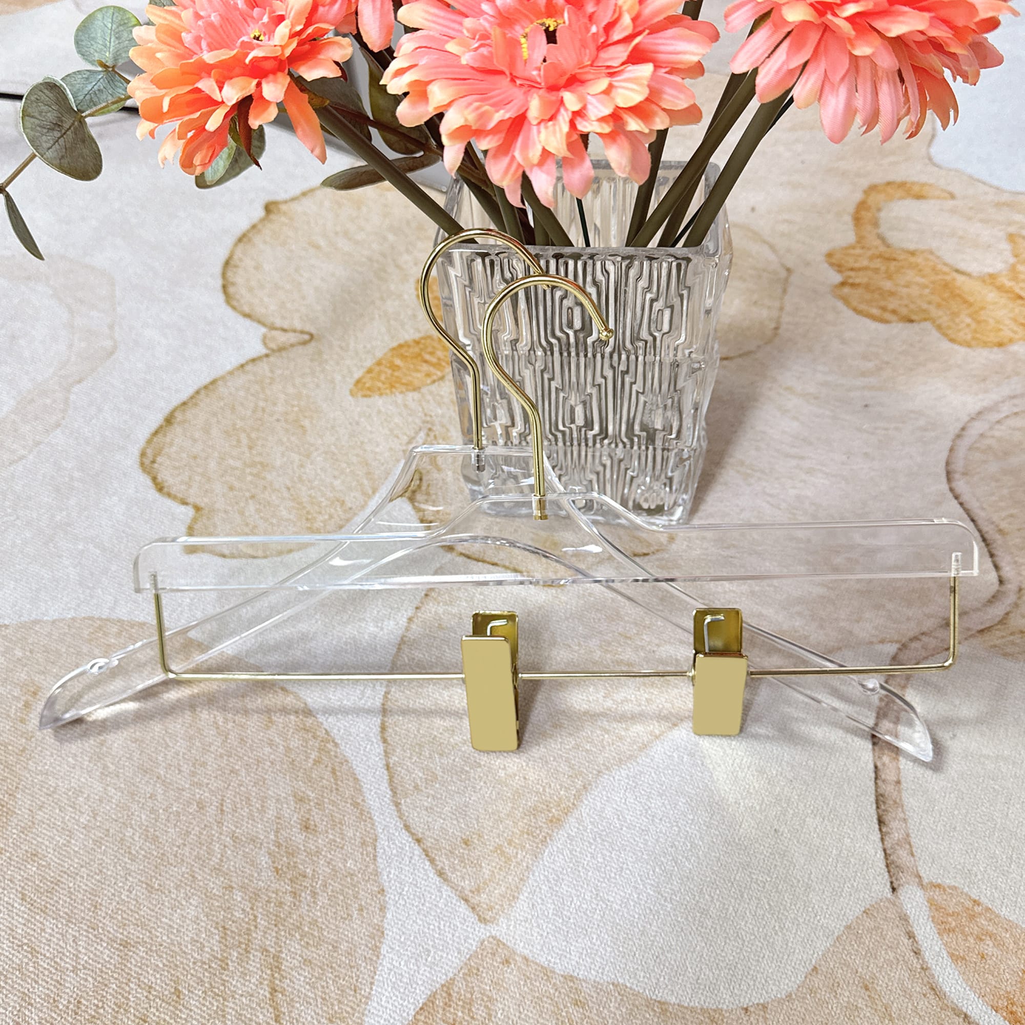 DE-LIANG Clothing Boutique Store Acrylic Pant Clothing Hanger Hanging Garment Rack Transparent Clear Wedding Dress Hanger for Clothes Display Stand
