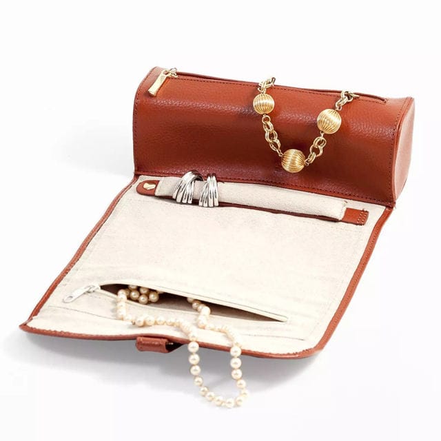 スーパーファイバーポータブル多機能レザージュエリーロールイヤリングリングネックレス時計&飲料保管用