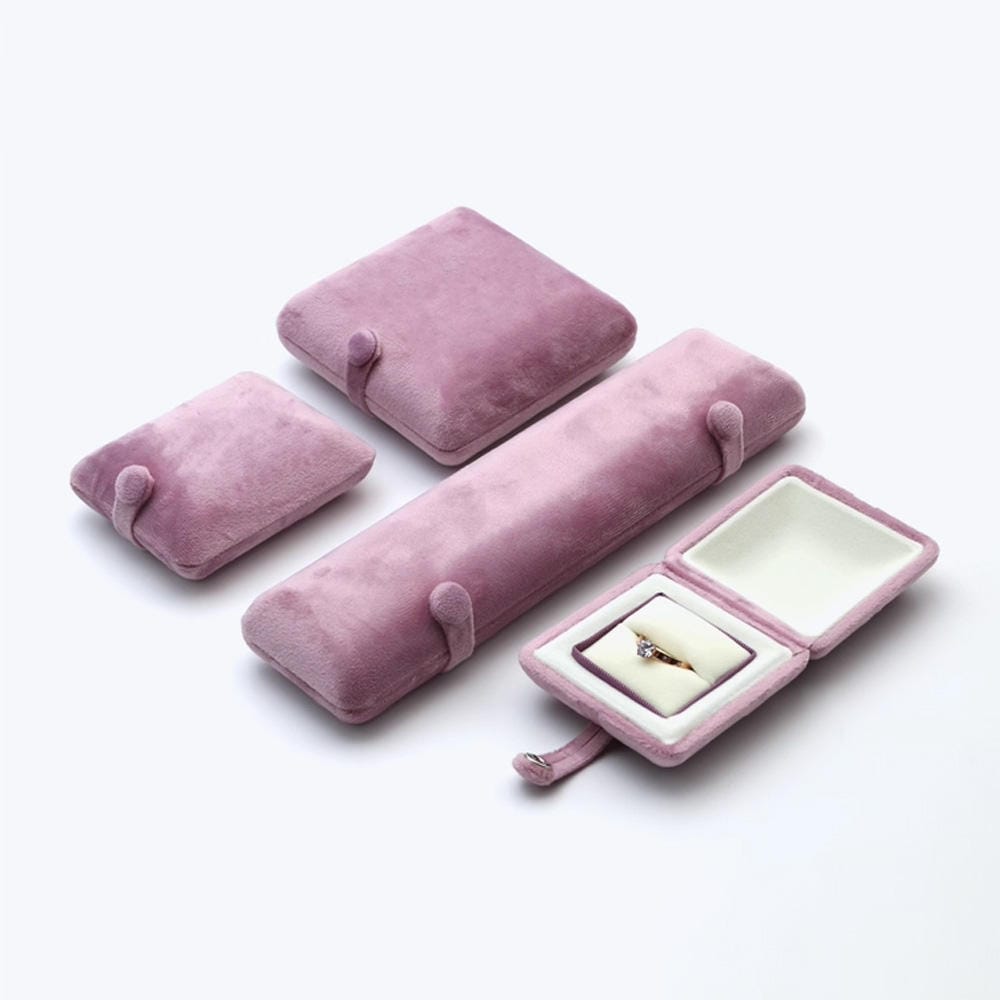 ピンク&グリーン・ベルベット・スナップ・ジュエリーボックス - 指輪&ネックレス用ポータブル収納、婚約、結婚式&ギフト用マルチサイズセット